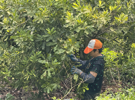 正在采摘澳洲坚果的当地村民。