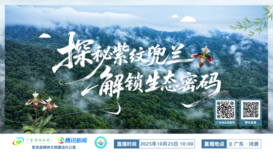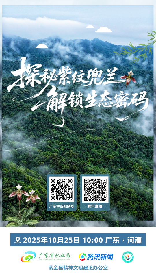 山峦叠嶂、溪流纵横,被誉为“粤北绿色明珠”的生态宝地——广东紫金白溪省级自然保护区,不仅是东江流域重要的水源涵养地,更是一座蕴藏着丰富生物多样性的天然物种基因库。本周六上午10点,锁定@广东林业直播间,带你深入紫金白溪,感受高负氧离子的洗礼,揭开紫纹兜兰的保护与繁育密码。