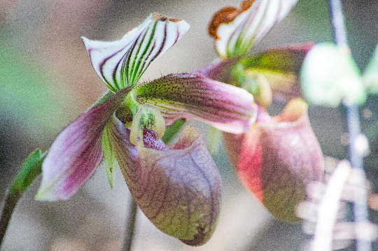 为保护这一珍稀物种,河尾山市级自然保护区科研人员对紫纹兜兰展开了系统性研究,定期深入山谷为部分植株建立生长档案,并通过长期巡护监测,精准掌握其分布范围与生长习性,同时严控人为干扰,逐步建立起一套全方位、多层次的科学保护体系,为紫纹兜兰营造了稳定、安全的生长繁育环境。