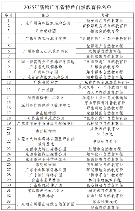 “十四五”期间,广东持续推进自然教育场所体系建设,全面完成来自然教育基地和自然教育径建设目标任务,初步形成了覆盖全省的多类型自然教育场所体系。