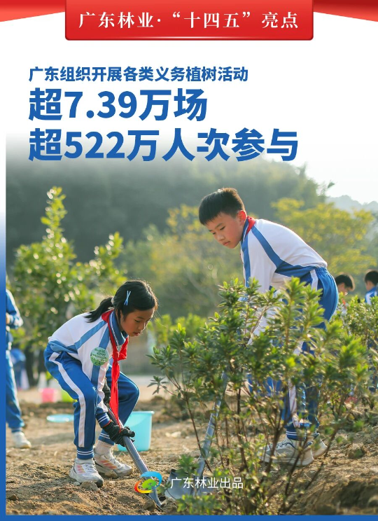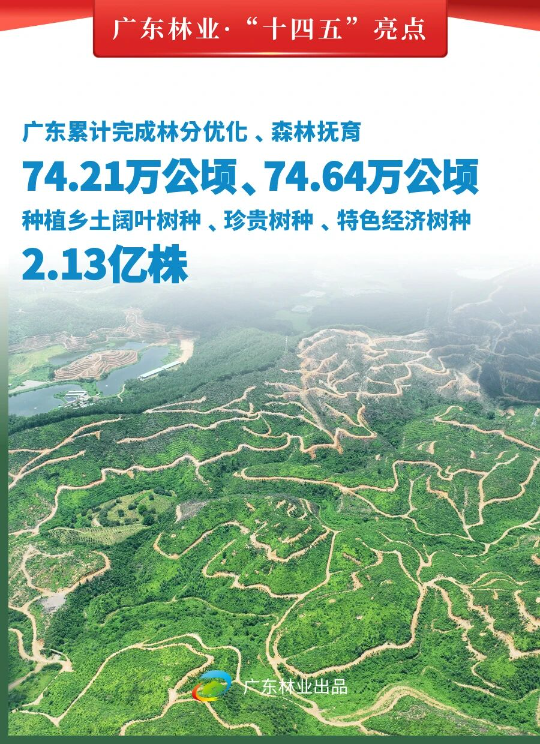 森林覆盖率达53.39%,累计完成林分优化74.21万公顷、森林抚育74.64万公顷,打造绿美点257个……一个个扎实的数据,是“十四五”期间广东林业锚定高质量发展目标,全力以赴建设南粤秀美山川的生动注脚。