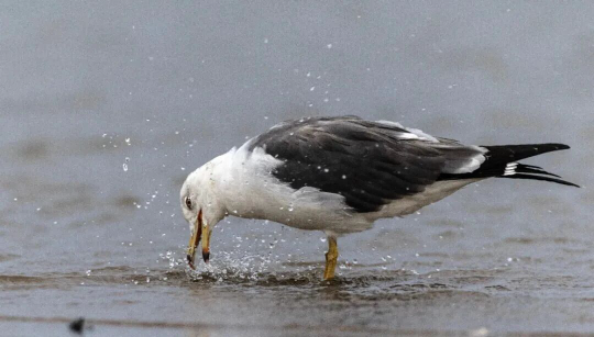 ▲国家一级保护野生动物遗鸥在水边觅食。