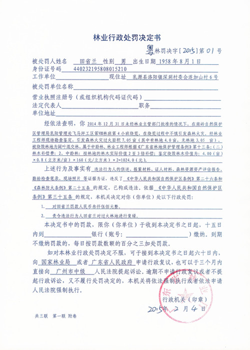 粤林罚决字〔2015〕第1号
