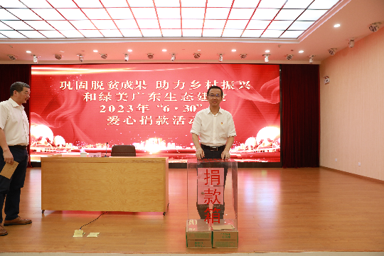 6月29日,省林业局举行2023年“6·30”巩固脱贫成果 助力乡村振兴和绿美广东生态建设爱心捐款仪式,号召省局机关和直属各单位的广大干部职工踊跃参与爱心捐款和消费帮扶活动,为巩固脱贫成果,助力乡村振兴和绿美广东生态建设付诸实际行动。
