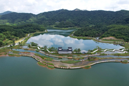沿环湖漫游径漫步或骑行,可途经观鸟平台、钓鱼平台,偶见白鹭翩跹掠过水面;若登高望远,连绵的森林景观带尽收眼底,枫香、红锥等彩叶树种随四季变幻色彩,宛如打翻的调色盘。