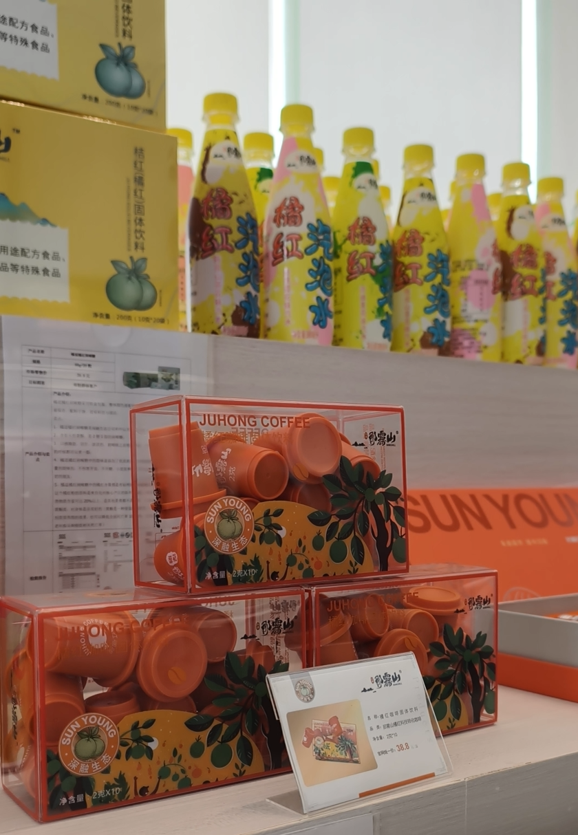 “深融公司整合了种植、研发、加工、销售全链条。”在公司展厅,陈成富展示了橘红果片、润喉糖、咖啡固体饮料、白酒乃至口腔抑菌膏等产品。