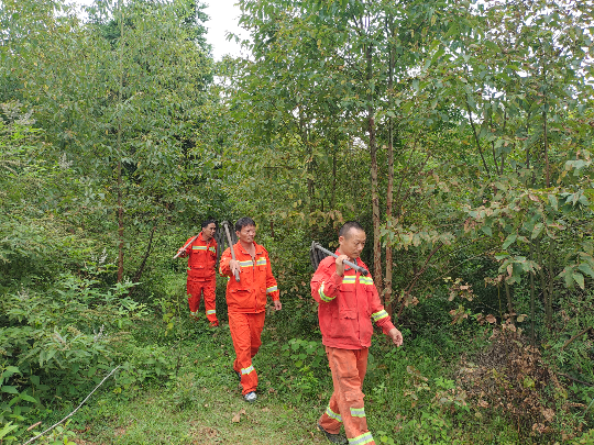 在龙川县鹤市镇莲坑村,护林员们驾驶着摩托车上山,开始一天的巡山护林工作。在山林间,护林员叶振东拿出巡护机,点开“护林员”App打卡,并沿着山路步行,仔细地排查林地安全隐患,查看森林防火情况,确保林区安全。