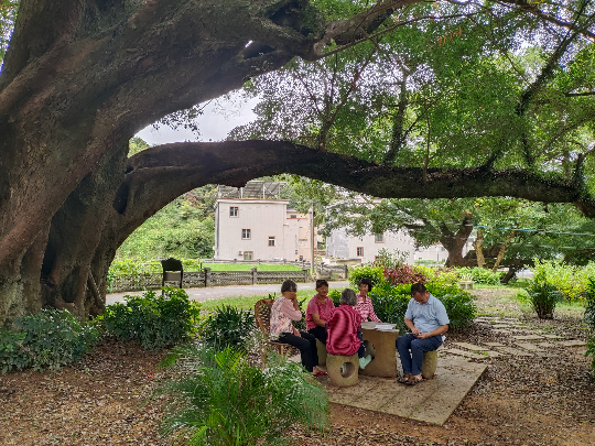 走进紫金县黄塘镇嶂拔村的古树公园,一株320年的古榕树枝繁叶茂,树下几名村民坐在石凳上闲话家常。古树公园内设置了休憩座椅、凉亭、党建长廊等设施,四季常青的古树与当地的自然景观相互融合,形成了独特的“小桥流水人家”风貌,吸引着众多游客前来观光游览。