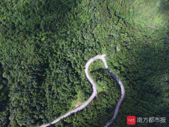 森林茂密的五桂山自然保护区,一条山路穿越丛林。南都记者 吴进 摄