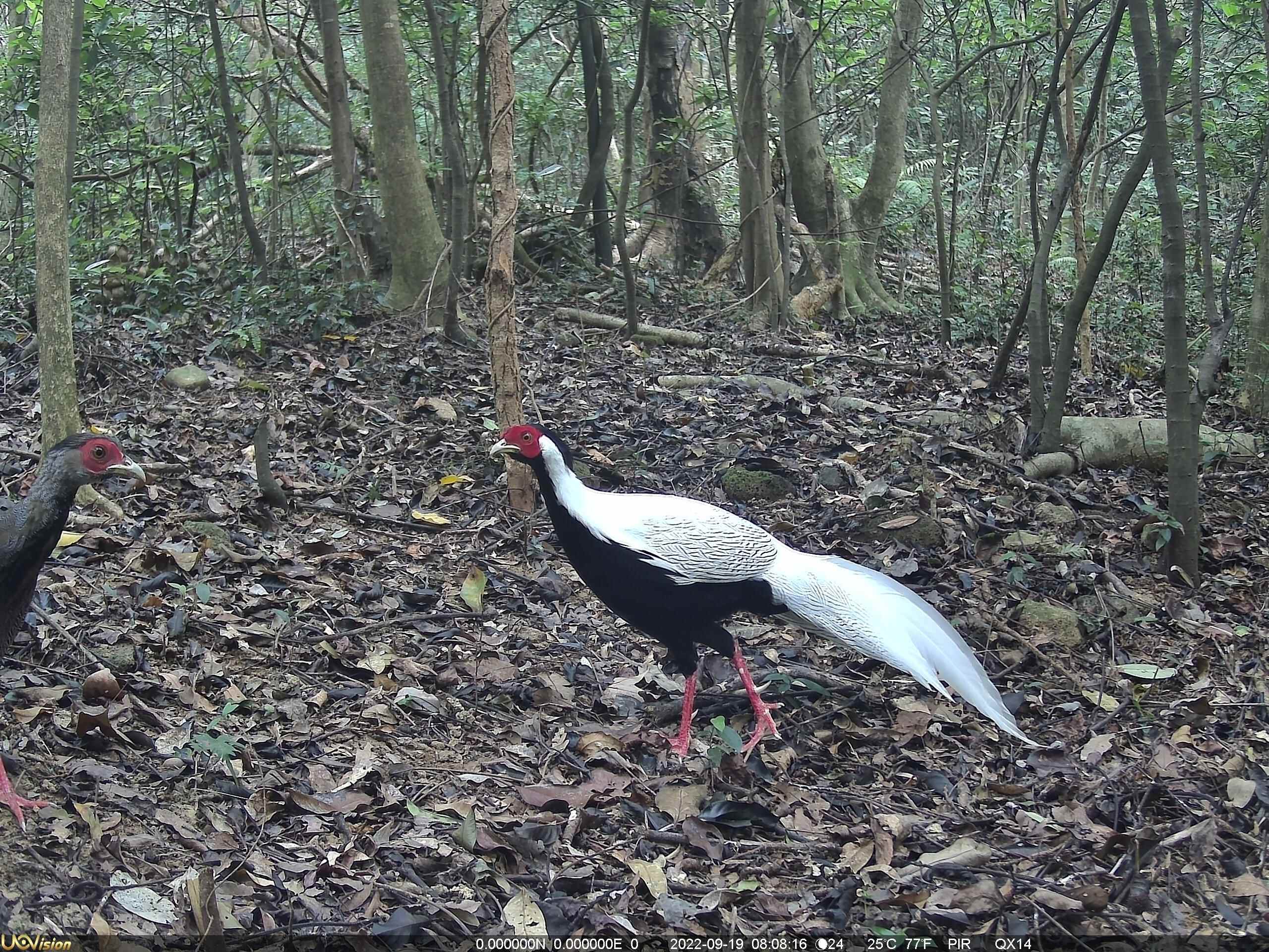 据了解,2022年,东莞市银瓶山森林公园启动生物多样性调查项目,并在园内布设红外相机30台,对公园内野生动物重点线路、出没地点等进行监控。2022年12月,工作人员在整理红外相机监测数据时,惊喜地发现在清溪、谢岗景区的4处红外线相机点位拍摄到了多只白鹇。东莞市林业局工作人员估算,现场有超过4个白鹇种群,最大种群数量超过10只。