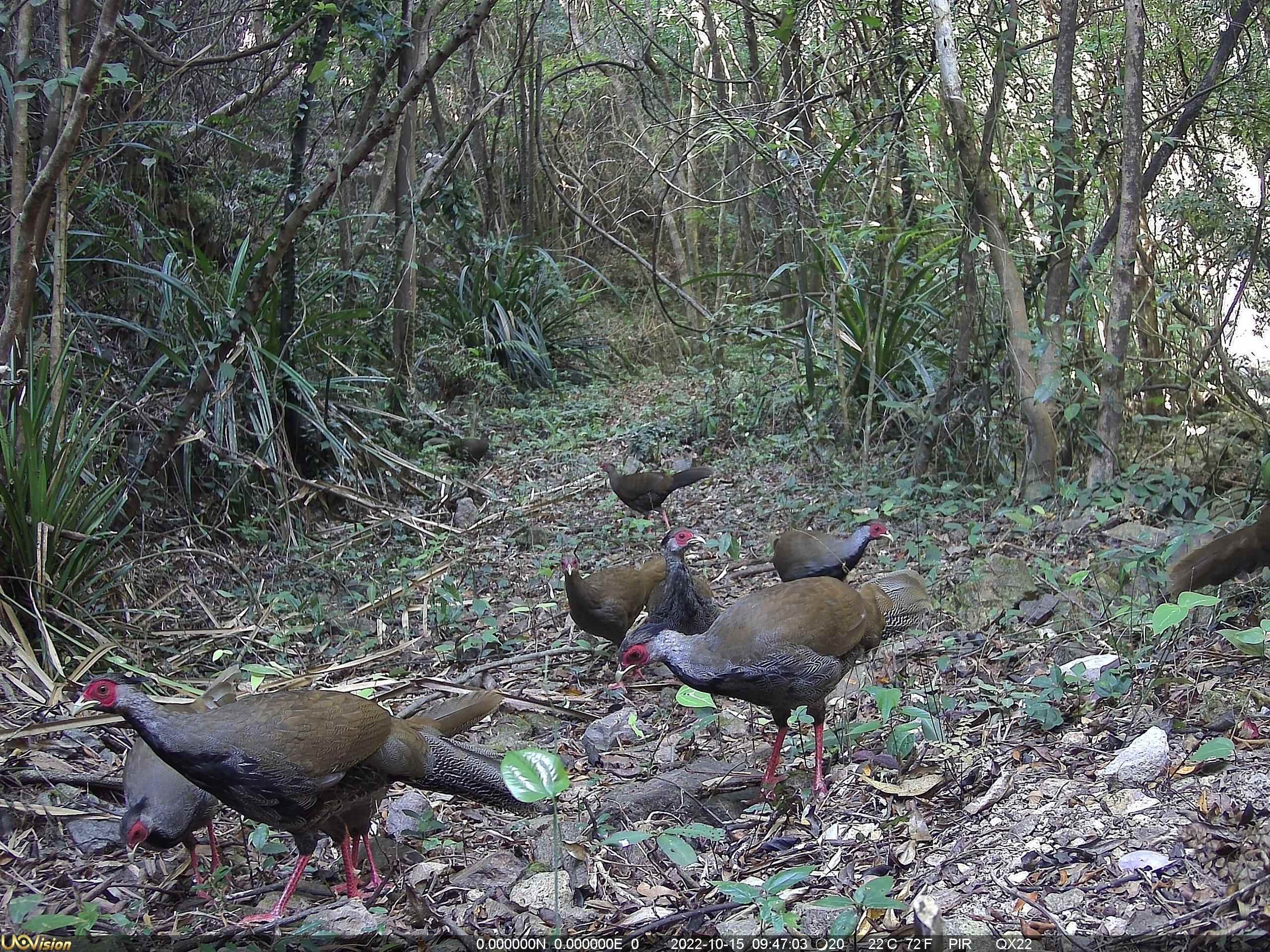 近日,东莞市银瓶山森林公园的工作人员在整理新近采集回来的红外相机素材时,发现了一大群白鹇入镜的珍贵画面。据估算,该森林公园内有超过4个白鹇种群、最大种群数量超过10只,这也是东莞市首次发现野生白鹇种群。
