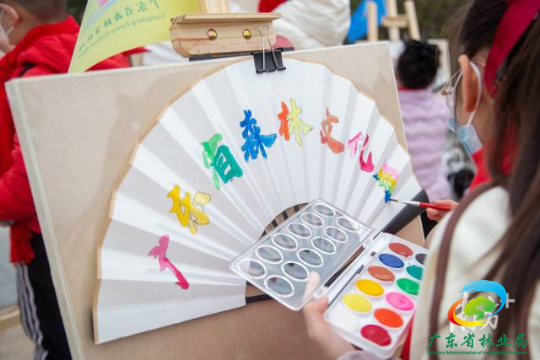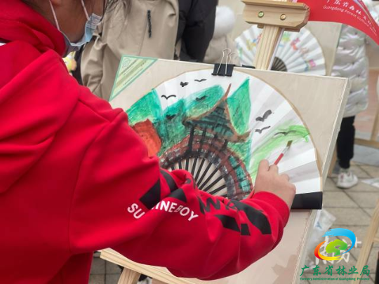活动现场,学生系着红围巾,在湖光山影中穿行,星湖湖堤宛如绿带子飘落在碧澄的水面上,孩子们和堤上翠绿的杨柳细语、和大气舒展的凤凰木“对话”,在橙红交错妖娆多姿的落羽杉前惊叹。森林美景让孩子们纷纷拿起手中的画笔,发挥想象力和创造力,把观察、感受到的森林美好,用充满童趣的笔法展现在传统仿古纸扇上,努力争做森林文化的记录者、宣传员。