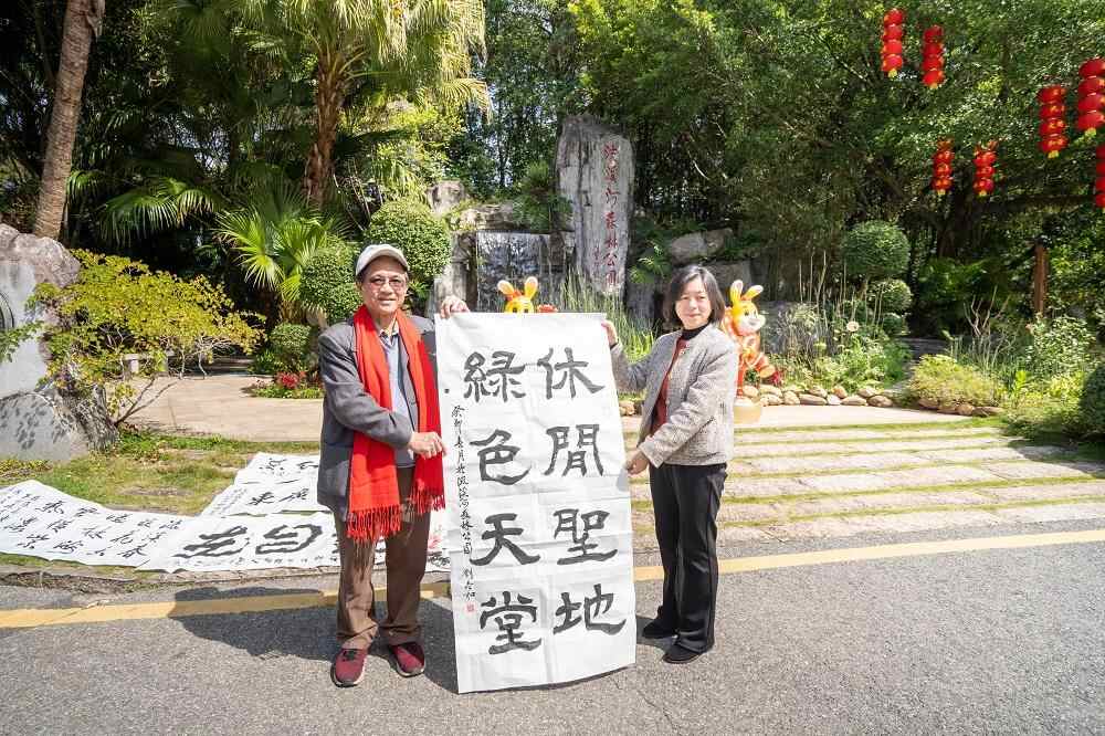 活动当天,艺术家们通过书法、作画、楹联、写作、吟诵等方式,表达对广州市流溪河国家森林公园的喜爱,对绿美广东生态建设的赞颂。创作出了书法《绿美广东》、诗歌《流溪河颂》、散文《哦,流溪红叶》等艺术作品。书画家代表现场挥毫泼墨,创作书画作品100余幅,其中部分作品免费赠送给了前来打卡的市民游客。