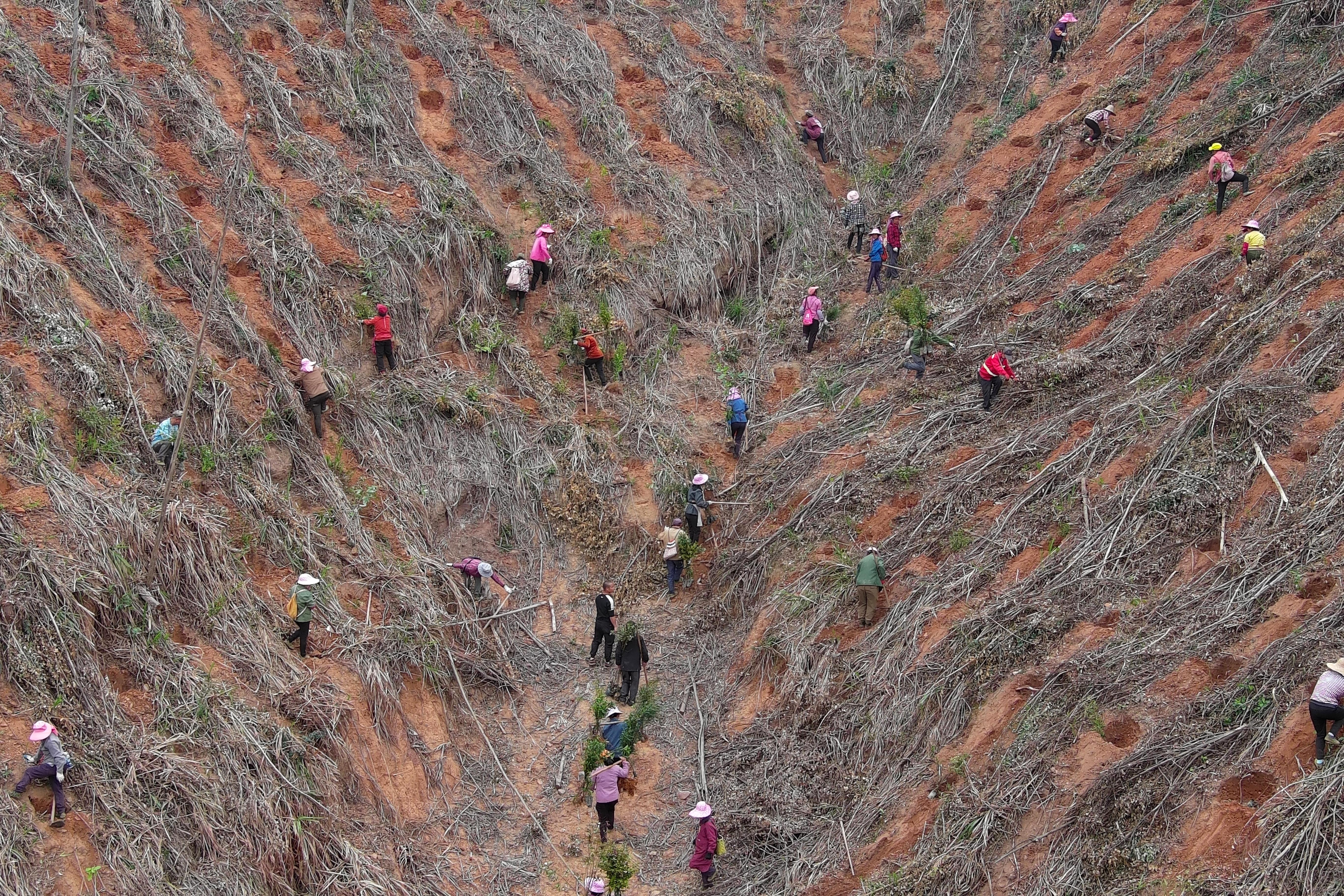 据了解,今年以来,始兴县已组织多次大规模植树造林。该造林点目前已全面进场施工,近百人上山作业。