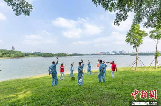 民众在东莞松山湖科学郊野公园健身运动。十大网赌平台推荐网站 供图