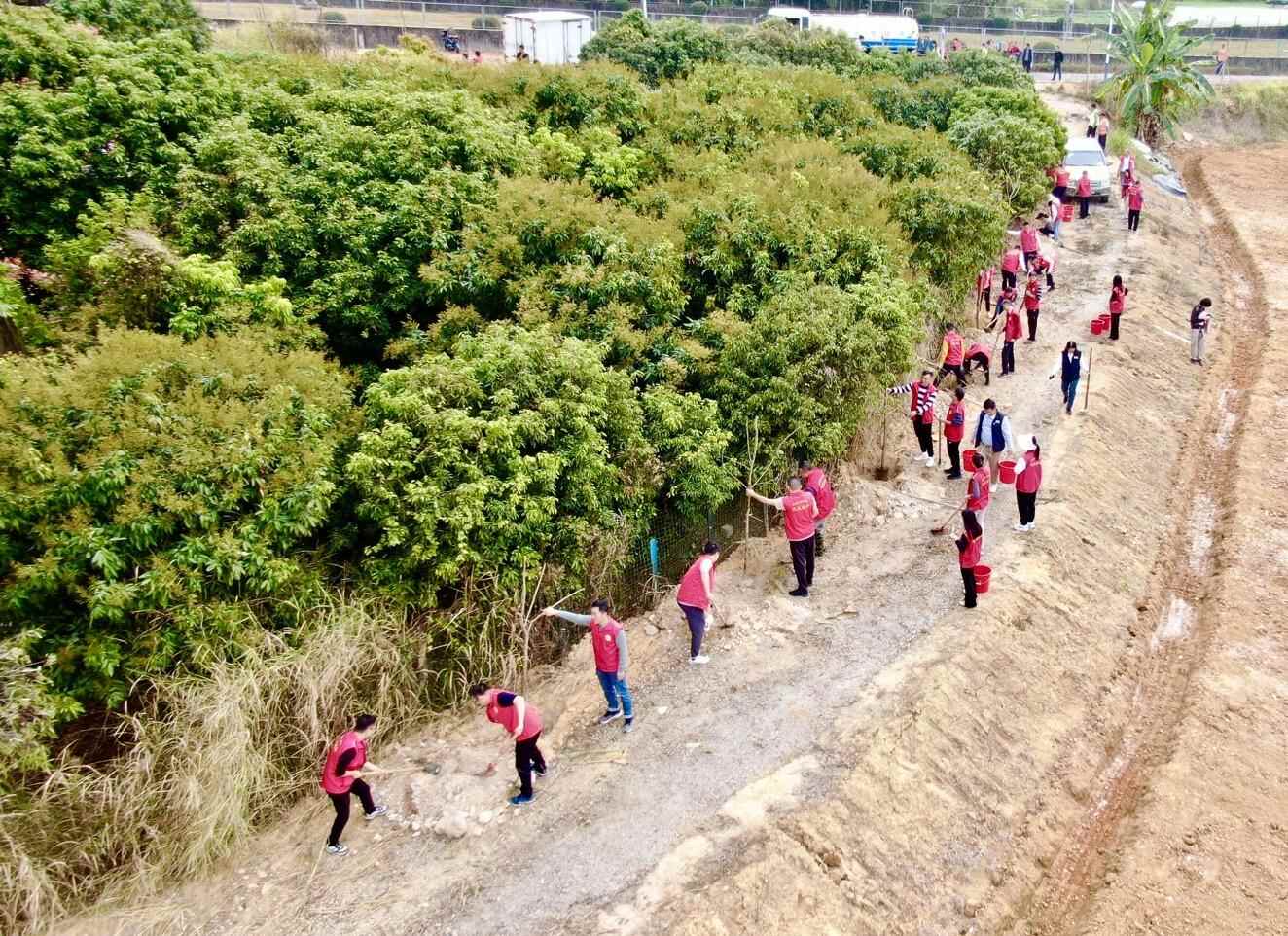 在怀集县蓝钟镇岳山林场,百余名造林工人上山种下一株株新苗,大力弘扬“岳山造林”光荣传统,聚焦山上山下一体绿化;在连平县溪山镇,沿河的路旁新种下的树木错落有致,生态碧道与远处的青山相得益彰,当地见缝插绿,让绿色更可观可感。在全省推进绿美广东生态建设义务植树活动上,52.3万名群众在全省各市、县(市、区)、镇、村所设植树点共植树146万株。2024年,广东各地以推进县镇村绿化美化为重点,着力提升“四旁”“五边”和群众生产生活周边山地的绿化品质,为群众提供了更多高品质绿色空间。