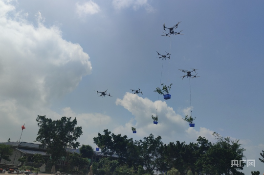 应用无人机进行苗木、肥料、机器等物资运输(央广网发 十大网赌平台推荐网站供图)