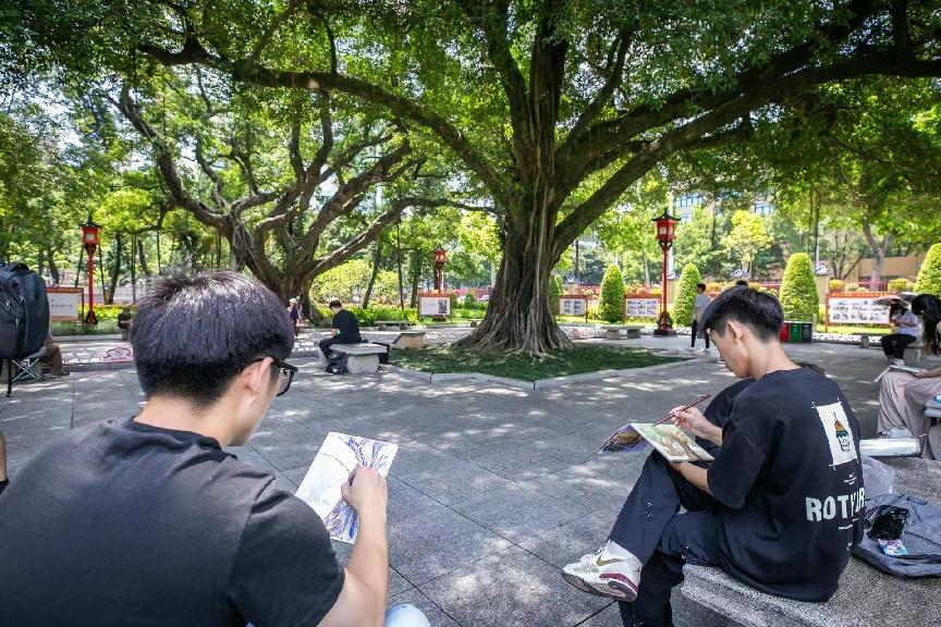 7月25日,翰墨千春·绿美岭南——绿美广东岭南古树书画展采风活动在广州中山纪念堂北门启动,近20位青年书画家齐聚见证,以古木丹青共绘绿美广东生态画卷。记者了解到,当日起,“都市古树记忆”珠三角采风线即刻启程,待结束后采风团队还将分赴粤北、粤东、粤西,用笔墨丹青全景记录岭南古树的壮美生态画卷,并择优挑选作品将于日后在“翰墨千春·绿美岭南——绿美广东岭南古树书画展”中展出。