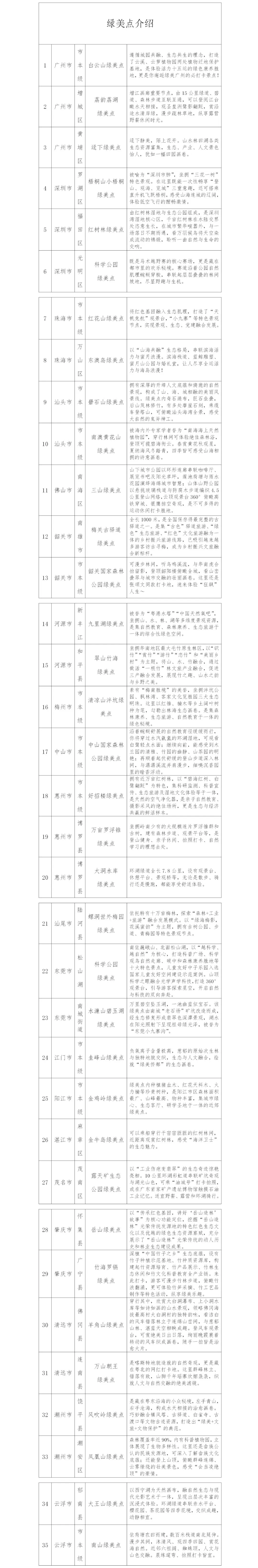 自绿美广东生态建设深入推进以来,广东各地结合资源禀赋和特色加速推进绿美点建设,截至目前,全省21地市共建设绿美点257个。伴随全运会赛事在广东多点开赛,35个具有代表性的绿美点同时串联起全运会赛事辐射区域,以满目苍翠为全运赛事注入绿美活力。