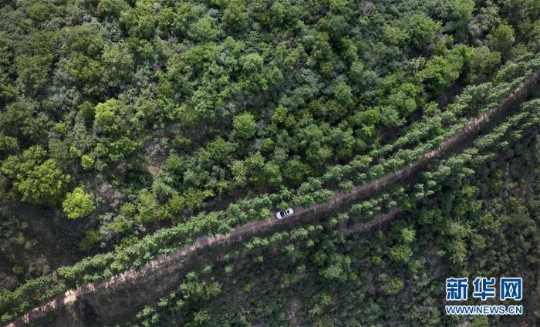 一辆汽车行驶在陕西省吴起县走马台村的山道上(6月5日摄) 新华社记者 陶明摄