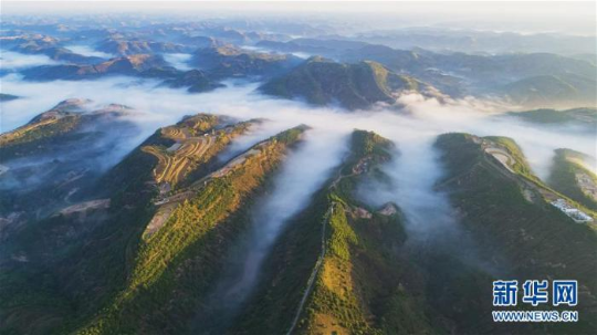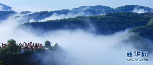 6月8日,陕西省吴起县胜利山翻腾的云海宛如仙境 新华社发(宗明远摄)