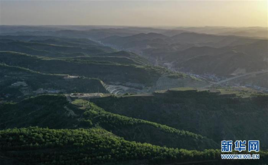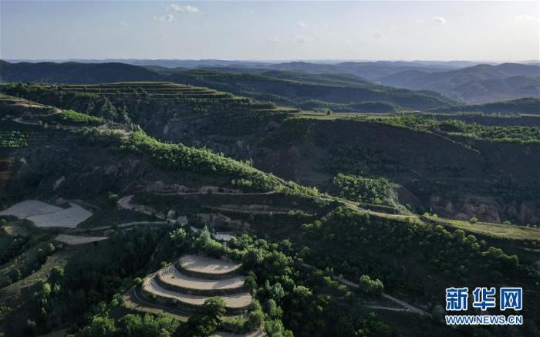 这是6月8日无人机拍摄的陕西省吴起县郭畔村一道道绿色山坡 新华社发(宗明远摄)