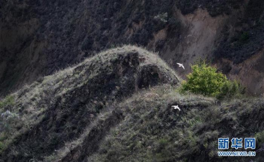 两只山鸡飞翔在陕西省吴起县金佛坪山川间(6月5日摄) 新华社记者 陶明摄