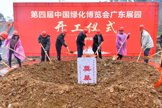 11月29日上午,第四届中国绿化博览会广东展园开工仪式在绿博园广东园址举行。