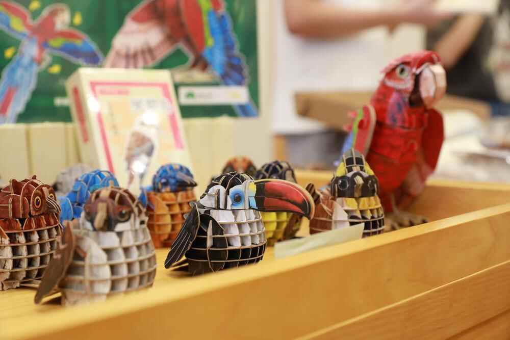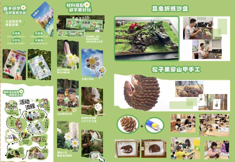 如《探索美育盒》结合广东潮安凤凰山省级自然保护区自然教育特色教学,研发出自然教育手册、松子果穿山甲手工和昆虫折纸沙盘等教具;《“濒危救援”自然科普游戏盒子》通过桌游的形式,传递动物知识、地理知识、生态系统的运行逻辑以及人与自然和谐相处的理念;《来自大自然的童话小屋》利用纯天然的果壳和螺壳载体打造童话世界;《梦巴格拼插纸模:为自然发声系列》让用户在体验拼装塑造鸟类模型的乐趣的同时增进相关知识……自然教育文化资源和创意设计应用在这里碰撞融合,玩出了更多新鲜“花样”。