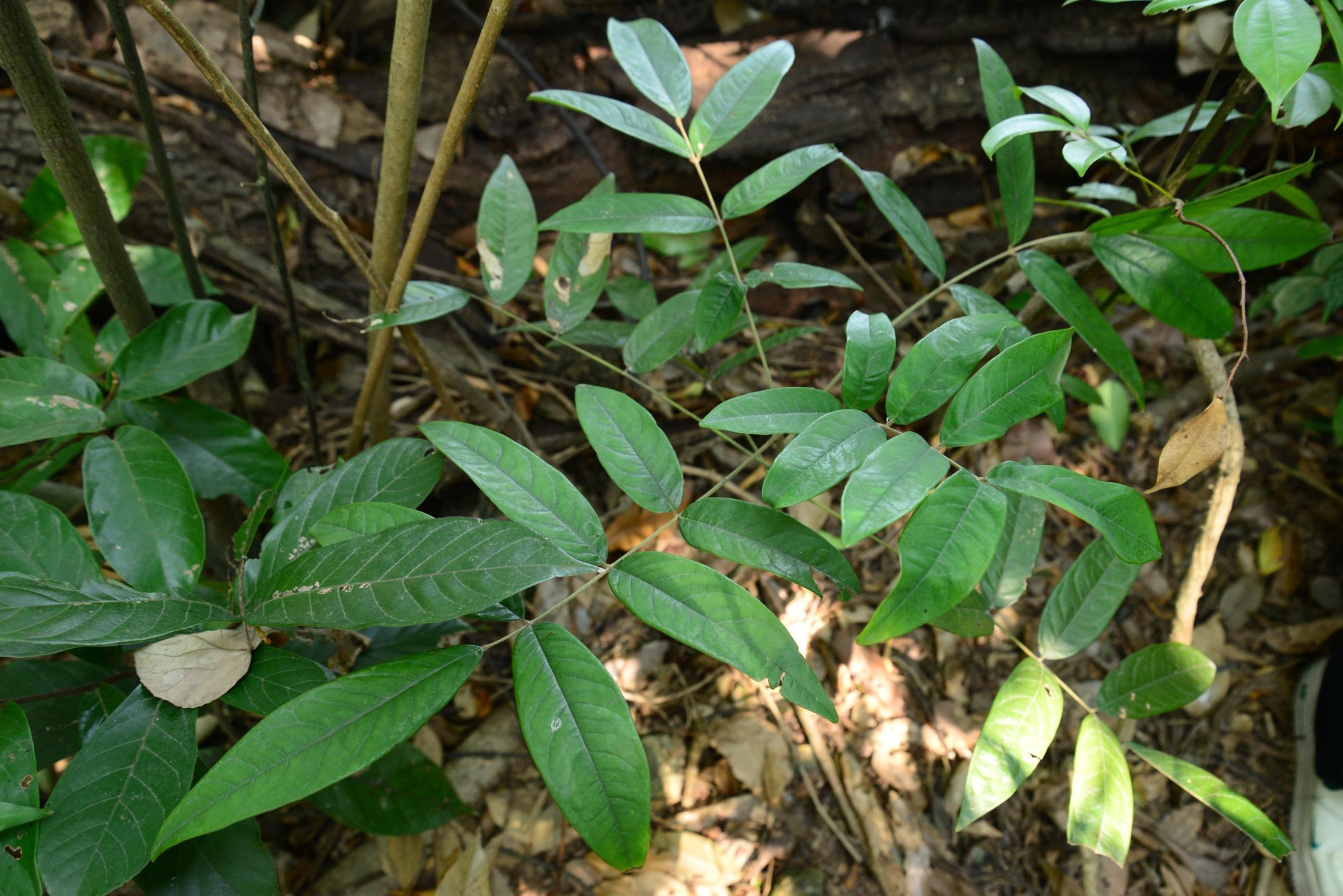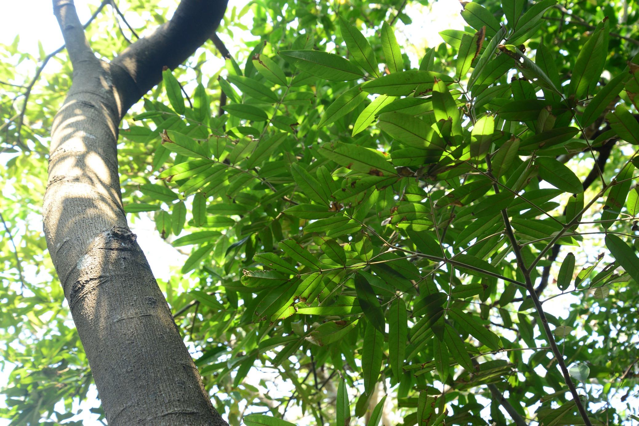 据介绍,在深圳坝光湿地园发现的花榈木野生种群一共有10株,其中胸径超过10厘米的成年植株有3株,最大一株胸径达16.2厘米,高约6米。其余7株为幼年植株,胸径在0.4-8.2厘米不等。“相较于内陆种群,该种群呈现显著滨海适应特征,如植株叶片更为短狭,叶背绒毛密度更稀疏。我们在现场同时发现了自然萌发的少量幼苗,证实该物种在深圳具备完整生活史。”何春梅说。