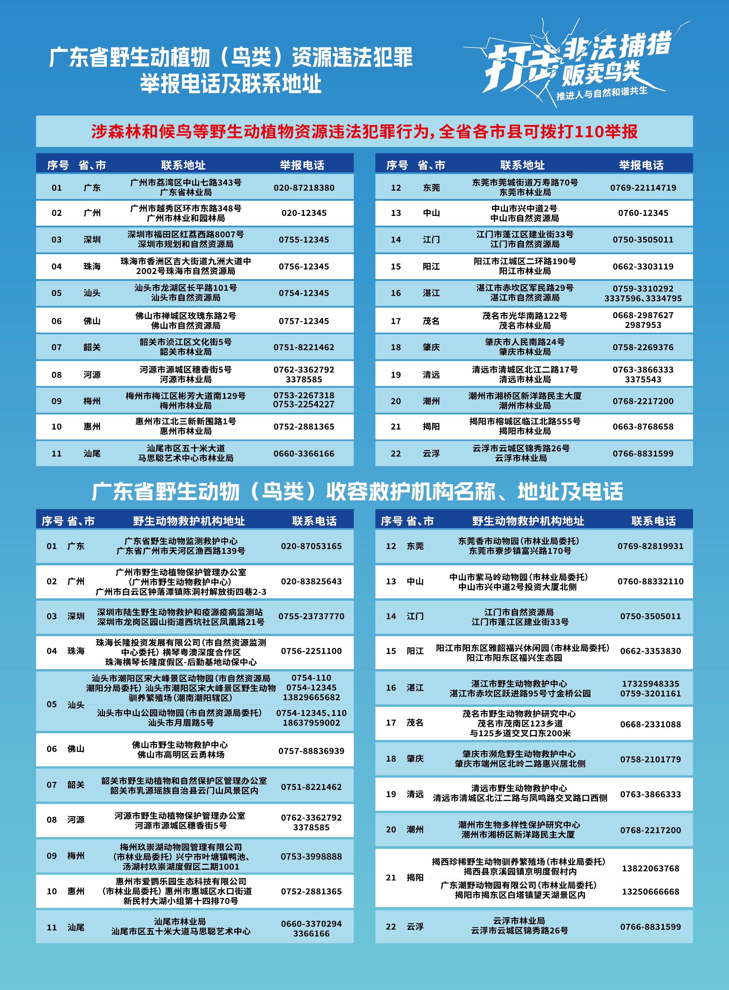 涉森林和候鸟等野生动植物资源违法犯罪行为,全省各市县可拨打110举报 | |||