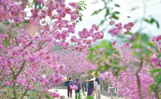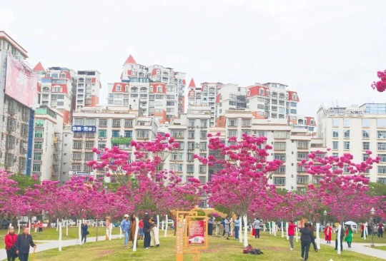 位于鹤山市共和镇来苏村的紫花风铃木,种植面积逾500亩。紫色花海成片绽放,远望似紫色云雾缭绕山野,近观则见蜜蜂翩跹其间,形成“人在花中走,犹如画中游”的沉浸式体验。