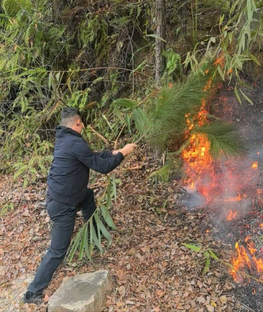 赵建军描述道,“竹子里面有很多干笋壳,堆在一起,一下子就爆燃起来。”扑灭竹丛明火后,他和家人、朋友们改用树枝继续扑打其他火点,但火借风势蔓延很快。