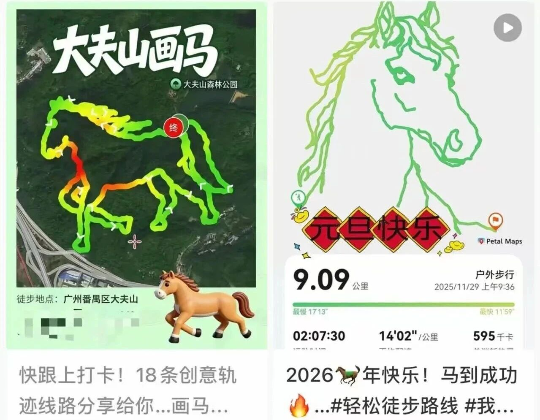 马年将至,在社交平台上,各地徒步爱好者分享了一种创意玩法——“画马”,相关穿越路线攻略一时引发追捧。