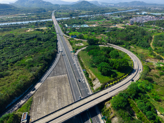 虽已步入冬季,但自闽入粤,驶入汕汾高速,道路两侧依旧繁花似锦,护坡绿意盎然,宛如一幅生机勃勃的画卷徐徐展开。