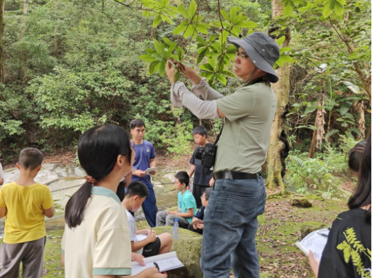 随后,孩子们来到自然课堂教室,一场别开生面的动植物知识讲座正在等待着他们。课堂上,通过精彩的图片、生动的视频以及实物标本展示,导师向小朋友们全面介绍了保护区内的动植物种类。从灵动的小灵猫、豹猫、仙八色鸫等国家重点保护动物,到形态各异的各类珍稀植物,孩子们仿佛置身于一个奇妙的生物世界。为增加互动性和趣味性,课堂还设置知识问答环节,孩子们踊跃举手,积极抢答,现场气氛十分热烈。