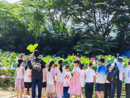 大自然从不在远方,它藏在荷叶的露珠里,在荷花的清香里,在孩子们探索的眼神里。