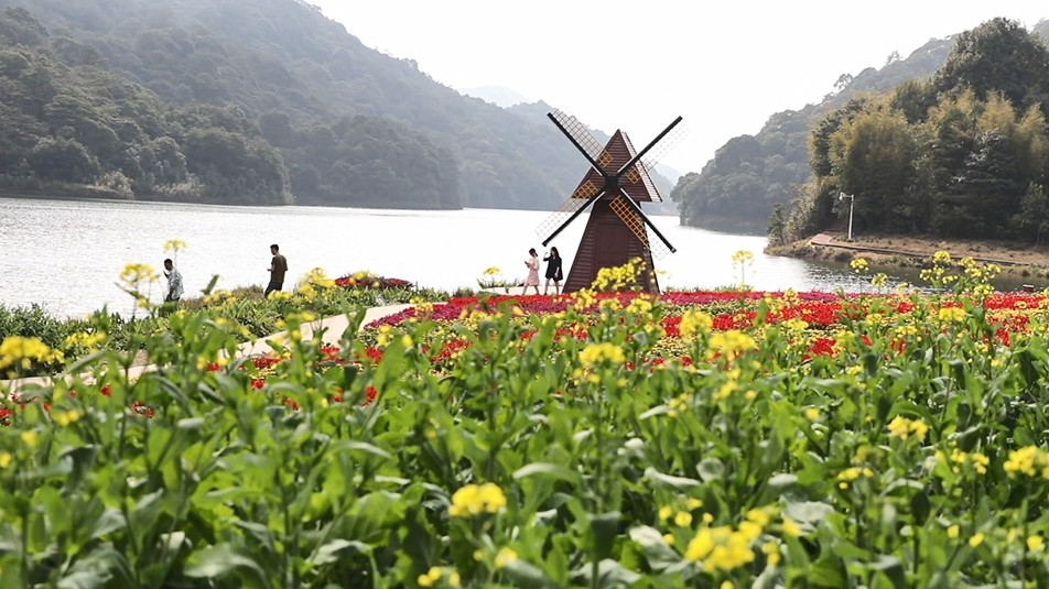 林间花卉满足了广东人对美好生活的需求。在石门国家森林公园看见,油菜花海与1.6万亩广州唯一一片原始次生林隔天池相望,一片片金黄犹如绿色翡翠中的一道道耀眼光芒。蓝天、白云、青山、绿水、鲜花浑然一体,美轮美奂。有游客表示,慕名而来,想不到这么美,真是花美人美心情美。