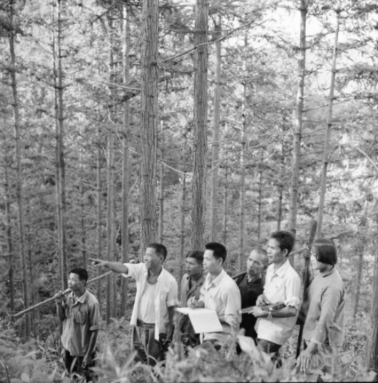 森林资源勘测队正在山林里作勘测作业。