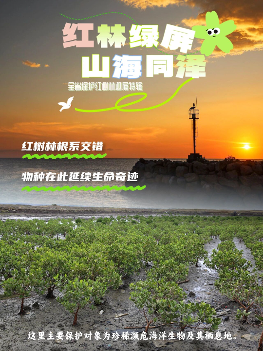 4月,全省保护红树林巡展活动正式启动,该活动以“红林绿屏 山海同泽”为主题,将在14个地市近30个省级以上红树林重要湿地、湿地公园以及红树林自然保护区进行展示。