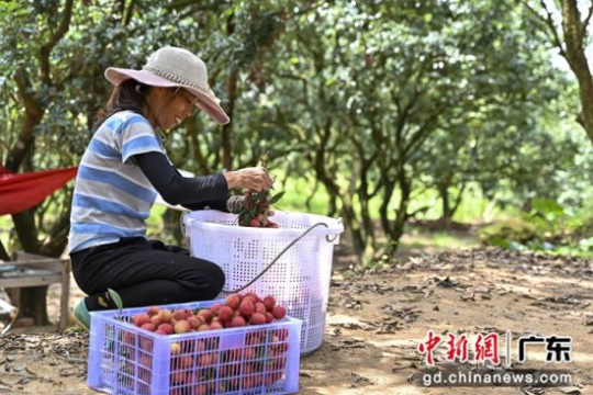 贡园古树的管护方式也在不断革新。以前,这些荔枝树都承包给村民管理。去年,根子镇柏桥村岭腰自然村将贡园流转给当地一家国企统一管理,农户每年可从中获得一笔可观收入。图为果农在根子贡园内采摘荔枝。记者 陈骥旻 摄
