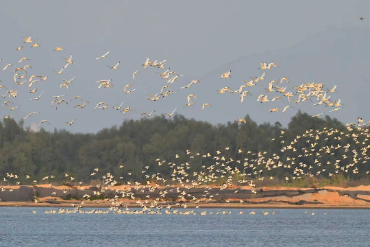 数百只珍稀黑脸琵鹭飞抵广东