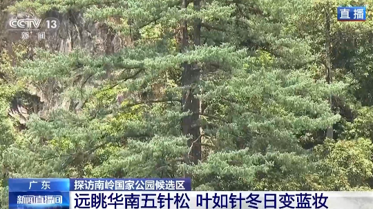 总台记者 张琦:华南五针松最有特点的是它的颜色,是会随着季节变化。平时灰绿色,到了冬天就变成粉蓝色。这是因为遇到冷空气树叶会分泌出一种防寒物质,在阳光的作用下显现出粉蓝色,形成奇特的蓝松奇观。