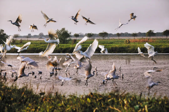 据2025年越冬水鸟同步监测数据显示,全省共监测到越冬水鸟88种,数量约12.9万只,同比增长近1.5万只。其中,国家一级保护野生鸟类东方白鹳、黑脸琵鹭、中华秋沙鸭数量均是2024年数量的3倍以上。