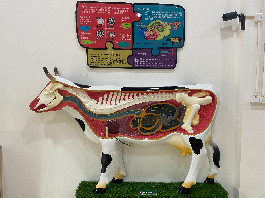 场馆内有牛反刍、长颈鹿血压互动装置,以及食草类头骨模型、黑猩猩表情、昆虫头部模型等,并配以相关科普牌,同时,场馆也是研学课程的上课地点之一。