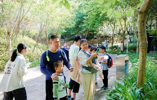 同日,大屏嶂森林公园开展了以“自然徒步小探险家”为主题的自然教育活动,邀请30组家庭开启一段涵盖森林知识科普、自然观察记录的森林探索之旅。