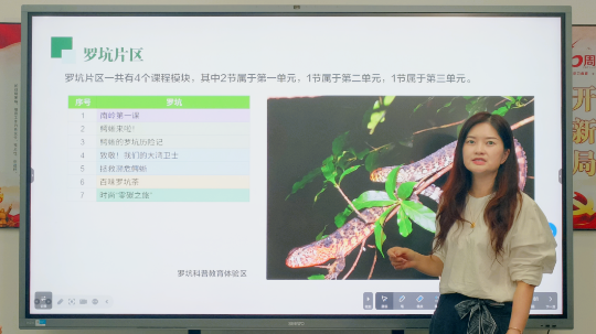 研学体验活动中,团队成员化身“教练”,从鳄蜥的生活习性讲到南岭的生态价值,从情景剧的演绎技巧延伸到如何引导孩子们大胆提问。他们还会收集老师试课后的反馈,动态调整课程细节。“有老师反馈游戏环节的关卡较少,我们立刻丰富了内容,增加了更多图片和视频素材。”苏雅丽回忆。
